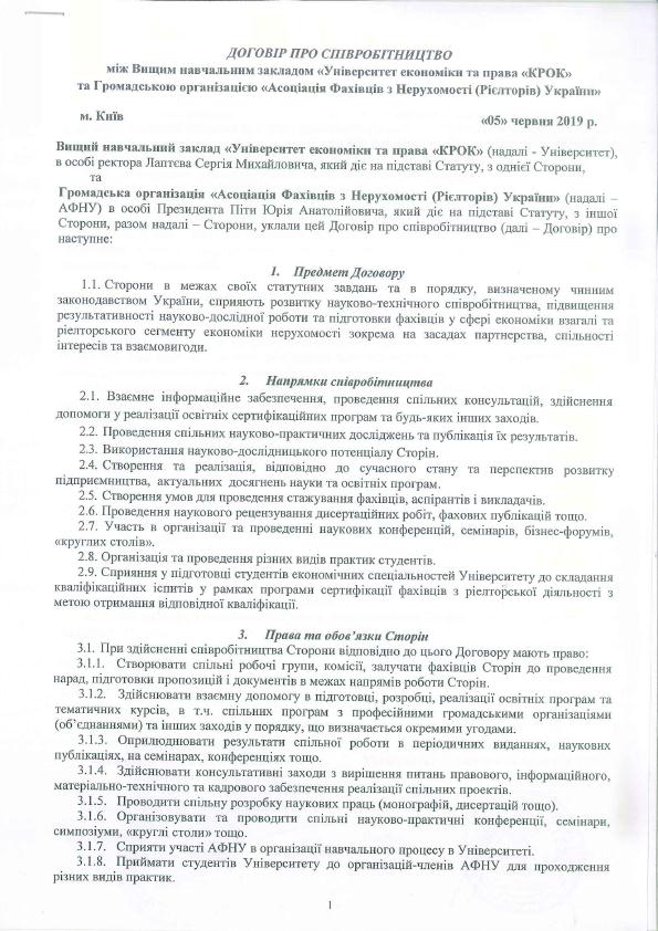 62016932_298053871081746_5989263093190885376_n.jpgВчера, 5 июня, произошло знаковое событие для всей риелторской отрасли в Украине. Университет экономики и права «Крок» в лице ректора Сергея Лаптева, заведующей кафедрой теоретической и прикладной экономики Ирины Родионовой и заведующего лабораторией управления имуществом и капиталом кафедры Виктора Дзюбко принимали официальную делегацию АСНУ. На встрече присутствовали Юрий Пита, президент АСНУ, Юрій Базелинський, вице-президент и член Совета АСНУ, Елена Гайдамаха, глава Киевского городского отделения и член Совета АСНУ, Анна Бондаренко, член Правления и глава комитета по образованию и повышению квалификации Киевского городского отделения АСНУ.