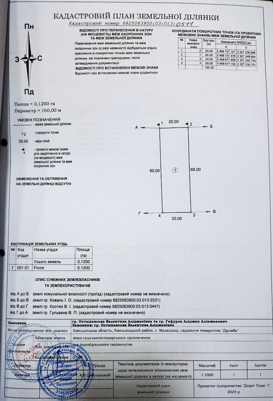 Кадастровий номер: 6825083900:03:013:0511