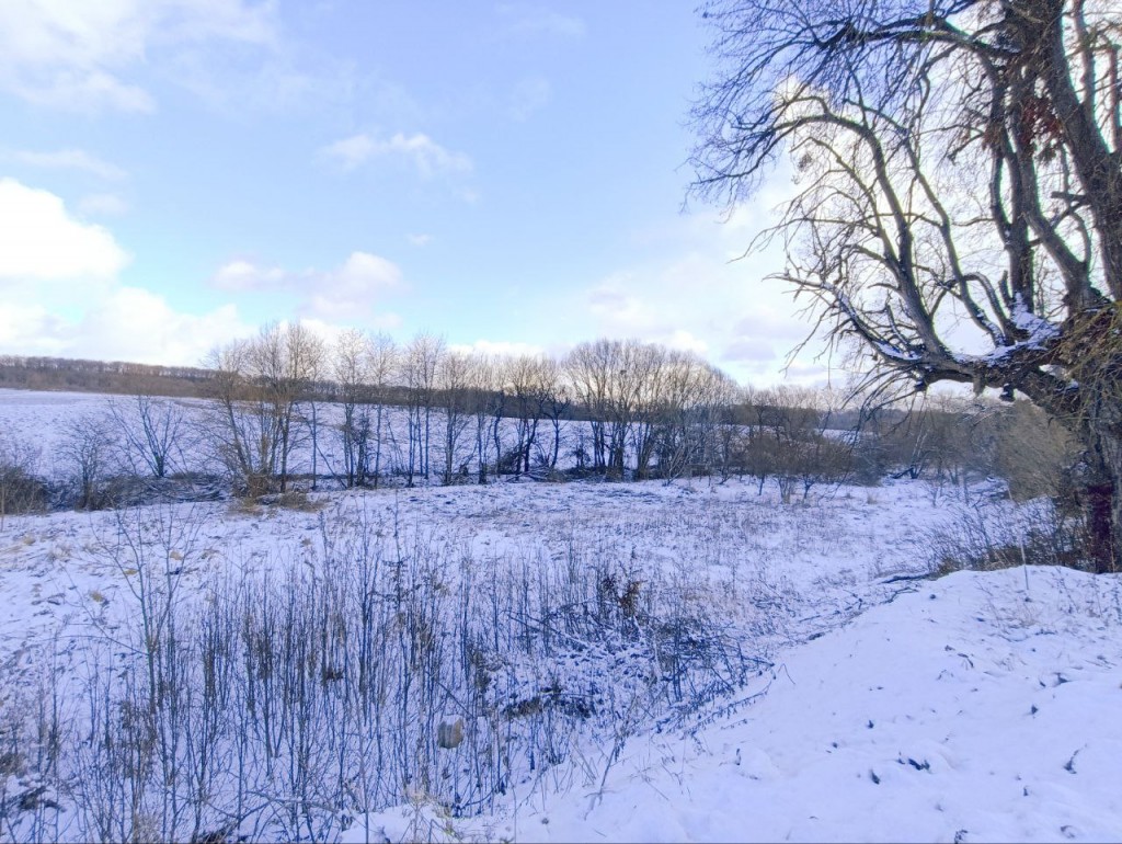 Ділянка фасадна, рівна, з мінімальним нахилом (з онієї сторони центральна дорога, з іншої струмок - при бажанні можна вирити собі ставочок).