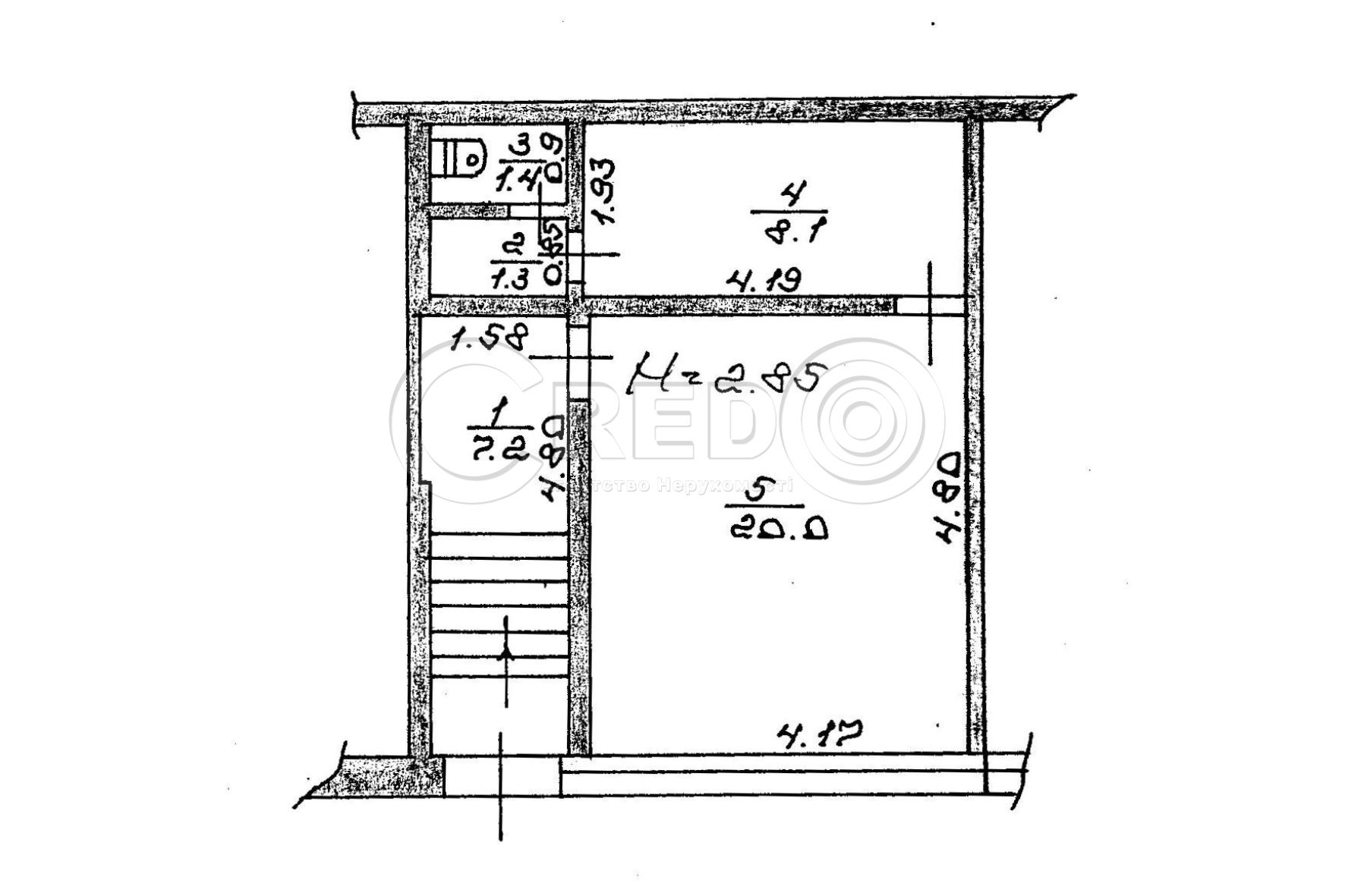 - Висота стелі 2.85м