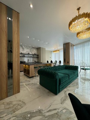Квартира з неймовірними краєвидами, що відкриваються з панорамних вікон. Ремонт виконаний з дорогих та якісних матеріалів у світлих, спокійних тонах. Є 3 кондиціонери. Тепла підлога по всій квартирі. Квартира на електриці. У квартирі продумано все до дрібниць, починаючи з санвузла, закінчуючи просторими гардеробними. Простора кухня-вітальня дозволить приймати багато гостей. 2 окремі спальні. Залишається абсолютно все: меблі, техніка. Заходь і живи. Ця розкіш чекає на тебе.