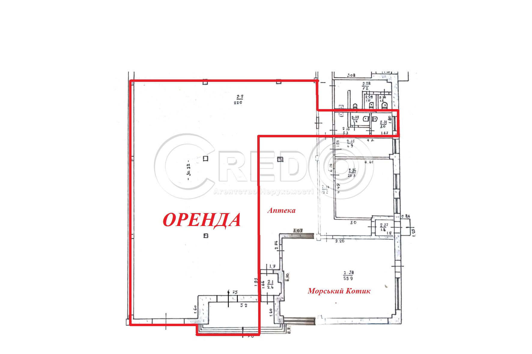 - Торгівельна площа – 220кв.м.