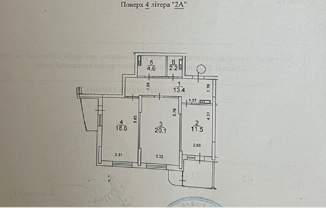 Кімнати роздільні 20.1 та 18.6 кв.м. 2 сан.вузли 4.6 та 2.2 кв.м, передпокій 13.4 кв.м. Балкон 3.1 кв.м та 0.4 кв.м, та лоджія 5.6 кв.м.