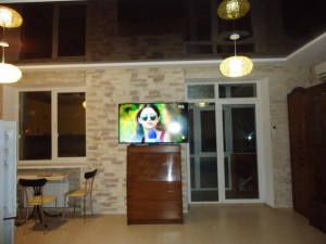 плазменный телевизор, кухонный уголок душевая кабина электрическая плита, встроенный шкаф-гардероб, меблированная кухня диван / мягкий уголок ,холодильник