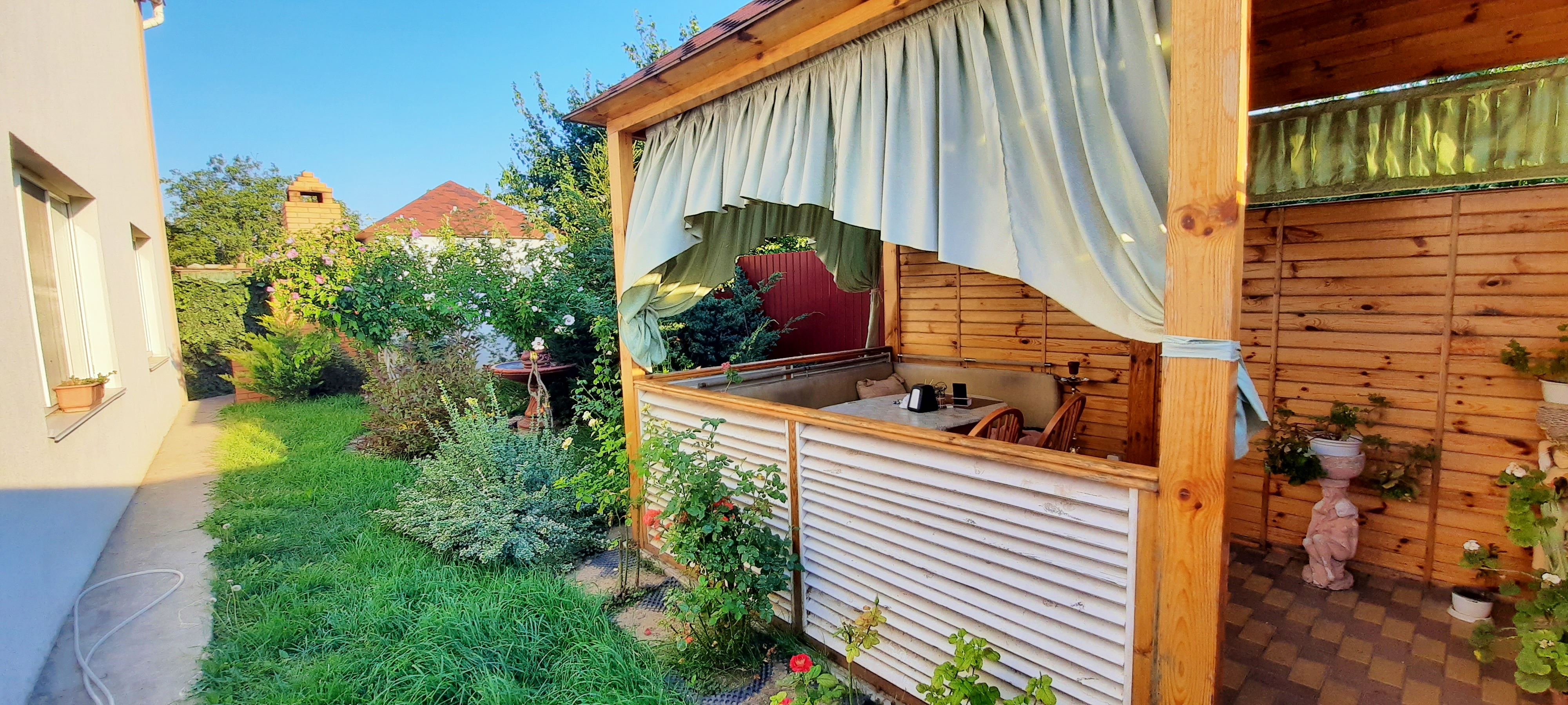 Двухэтажный дом расположен на 3,5 сотках земли в Корабельном районе в 5 минутах ходьбы от остановки Универмаг. Дом просторный, светлый, снаружи утеплен минеральной ватой. Крыша металлопрофель. В доме 5 комнат, одна проходная 4 отдельные. Выполнен качественный ремонт, в четырех комнатах установлены кондиционеры. Отопление газовое, установлен 2-х контурный газовый котел. На каждом этаже свой совмещенный санузел, кафель. Счетчики на свет, газ и воду. Площадь дома: 133,2/91,2/9,7 кв.м. Дом продается частично с мебелью. Во дворе обустроена зона отдыха.